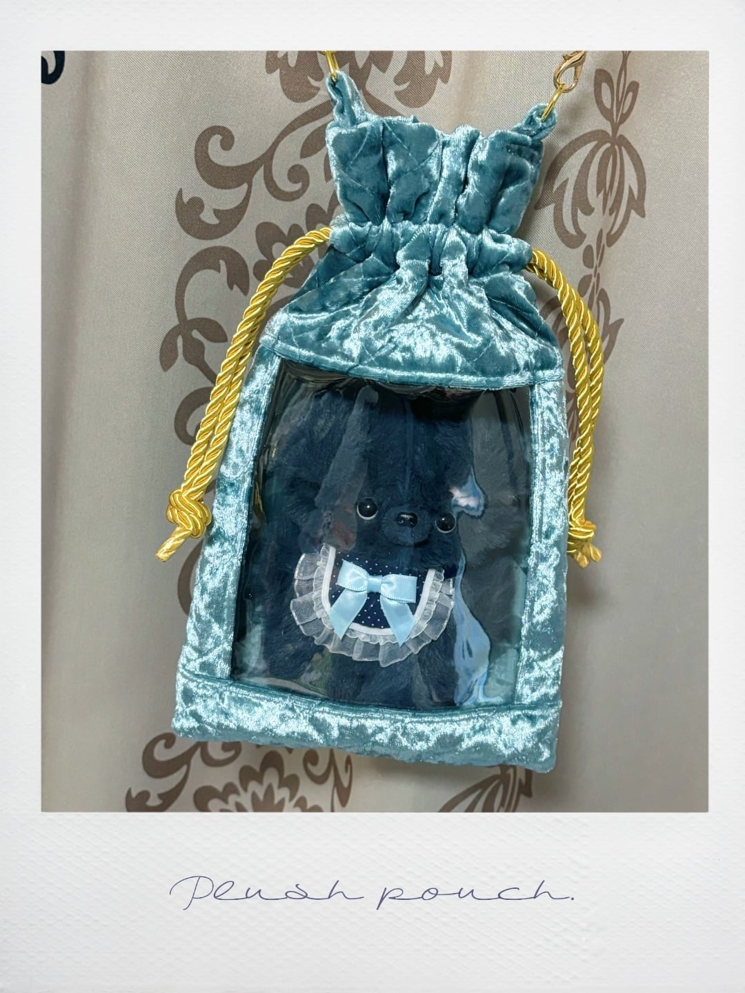 【試作サンプル特価】窓付きぬい用巾着ショルダー ベロアキルティング ブルー